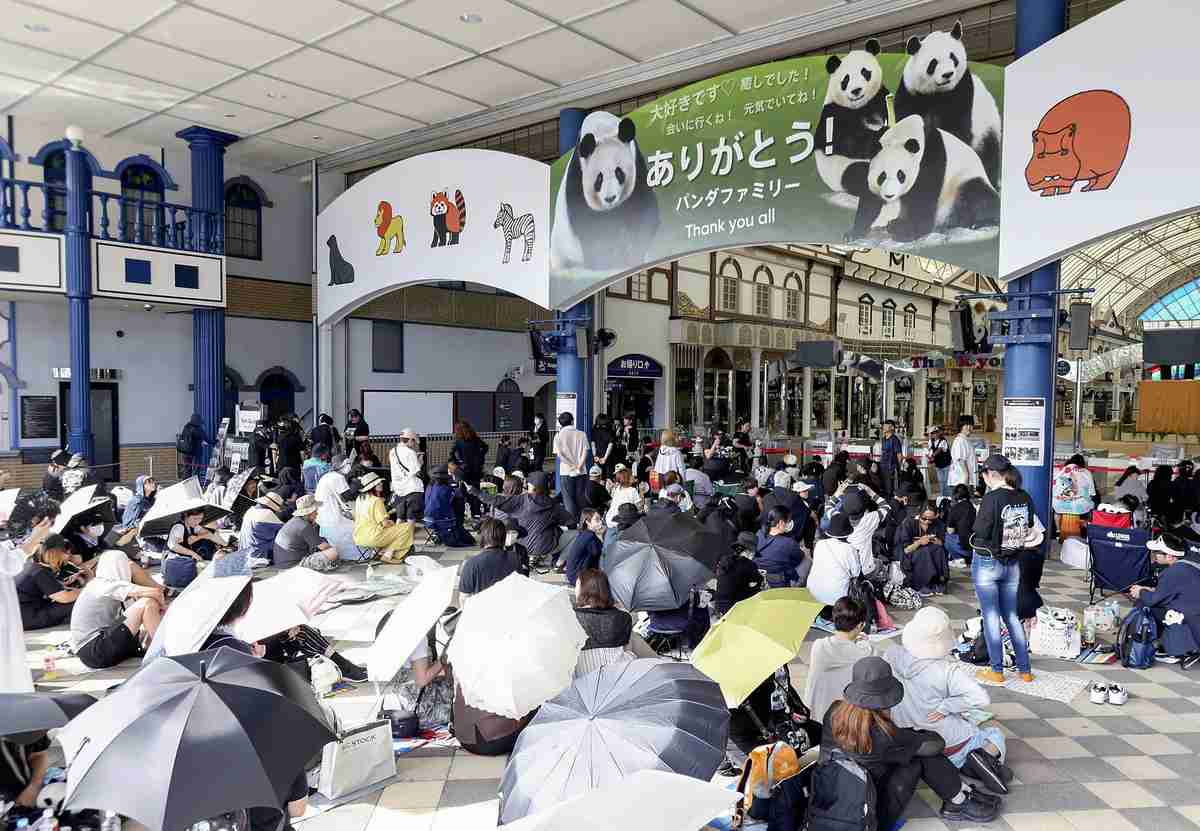 The four female pandas — Rauhin, 24, the first female panda born at Adventure World, and her three children, Yuihin, 8, Saihin, 6, and Fuhin, 4 — drew large crowds of fans on Friday, the last day the public could see them at the park.