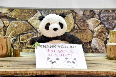 Following their departure, a board with “THANK YOU ALL” written on it and a panda stuffed toy were placed at the park facility where the pandas had been kept.