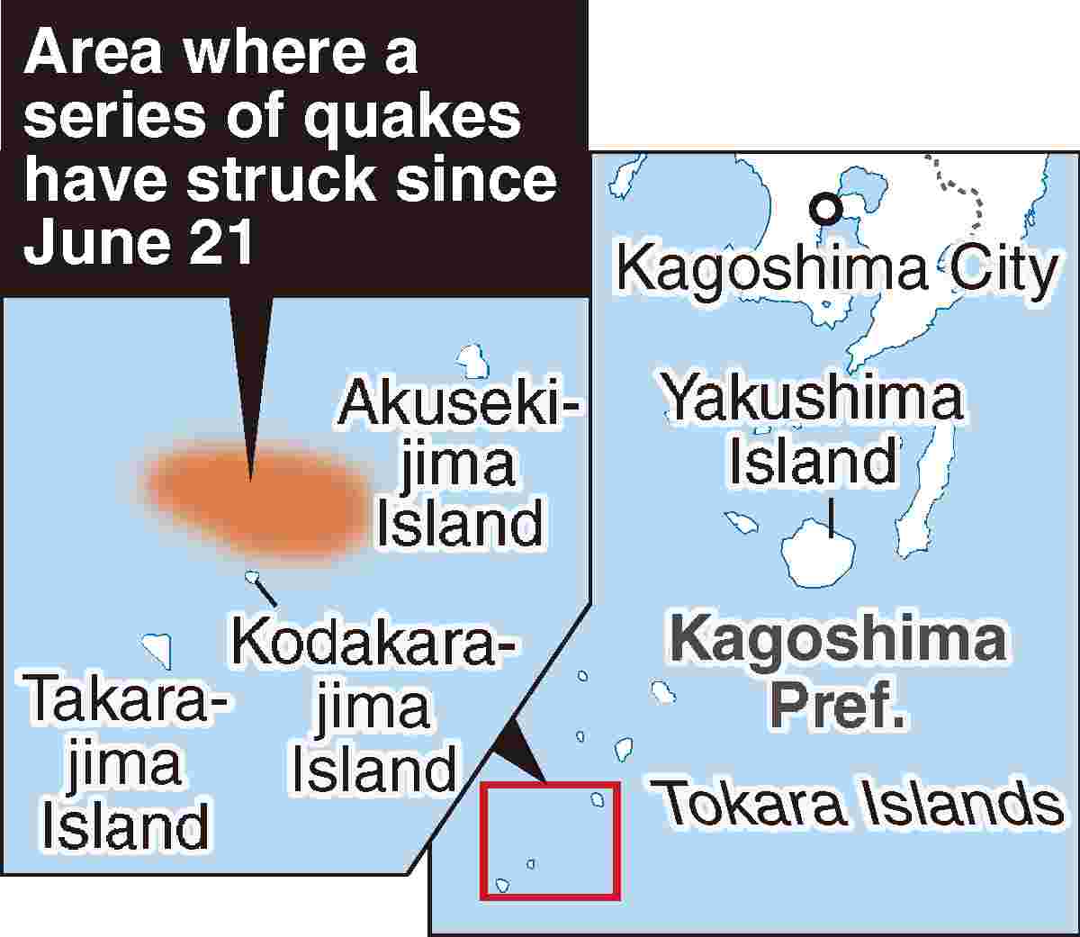 An earthquake with an estimated magnitude of 4.4 struck off the coast of the Tokara Islands at about 12:42 p.m. on Sunday. Akusekijima Island, part of Kagoshima Prefecture’s Toshima Village, registered a 4 on the Japanese seismic intensity scale of 7.