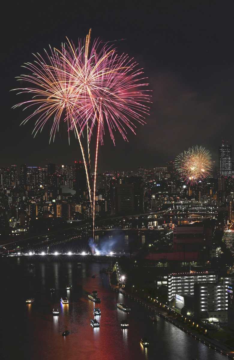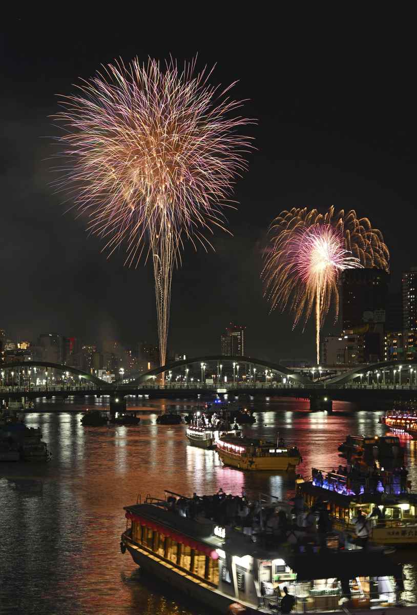 Fireworks lit up the sky over the Sumida River in Tokyo on Saturday during the 48th Sumida River Fireworks Festival.