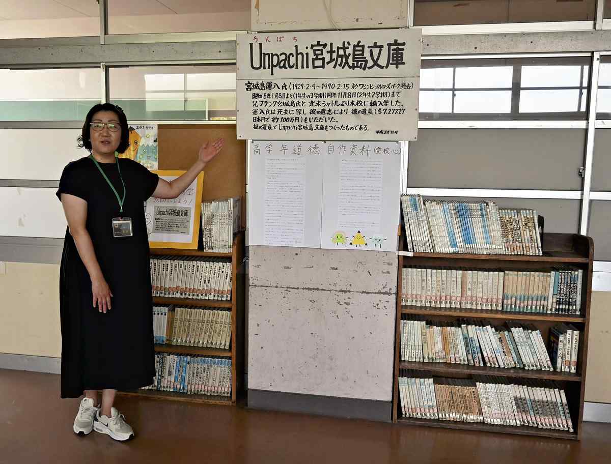 The Unpachi Miyagishima Bunko book collection was established in November 1991 with a donation of about $7,200 (about ¥1 million at the time) from Miyagishima’s estate to the elementary school.