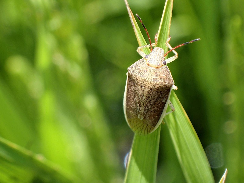 The bugs, known for their foul odor, prefer gramineous plants like rice. They attach themselves to a rice plant when it is forming its ear, pierce the grains with their stylets and suck out the juices. As a result, the grains develop the black or brown spots and cannot be shipped for human consumption.