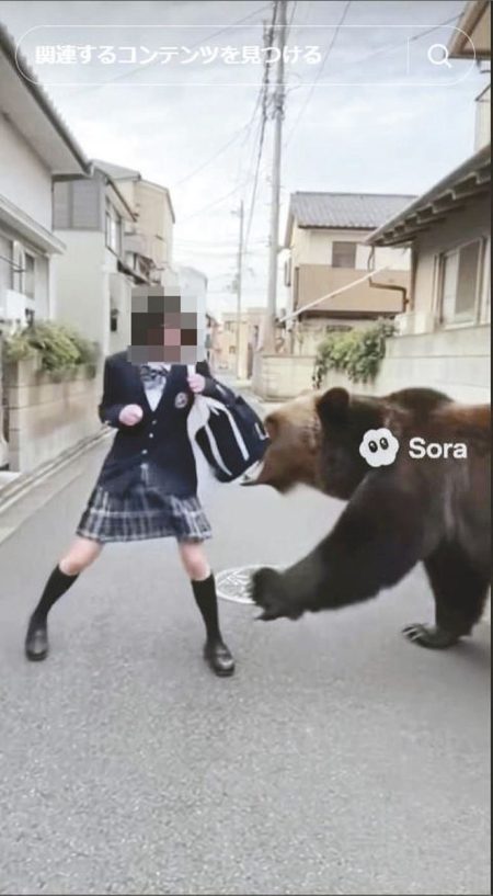 Many such fake videos can be found on the video-sharing app TikTok. The Yomiuri Shimbun did a search for the Japanese words for “bear” and “video” on the app, and then checked 100 of the videos that appeared. About 60% featured the “Sora” mark indicating they had been created by U.S.-based OpenAI’s generative video model. Some of the video posters wrote in their profiles that they used videos made by generative AI. Some videos had been viewed several hundred thousand times.