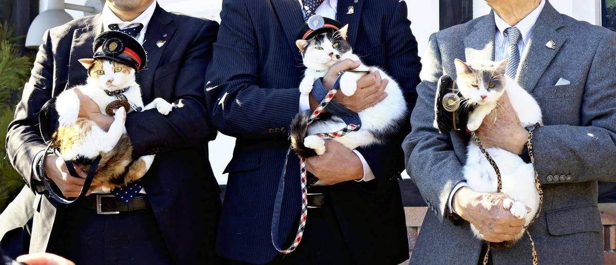 Cat Stationmaster Inauguration Ceremony Held in Wakayama Pref.; Yontama Take Charge at Kishi Station