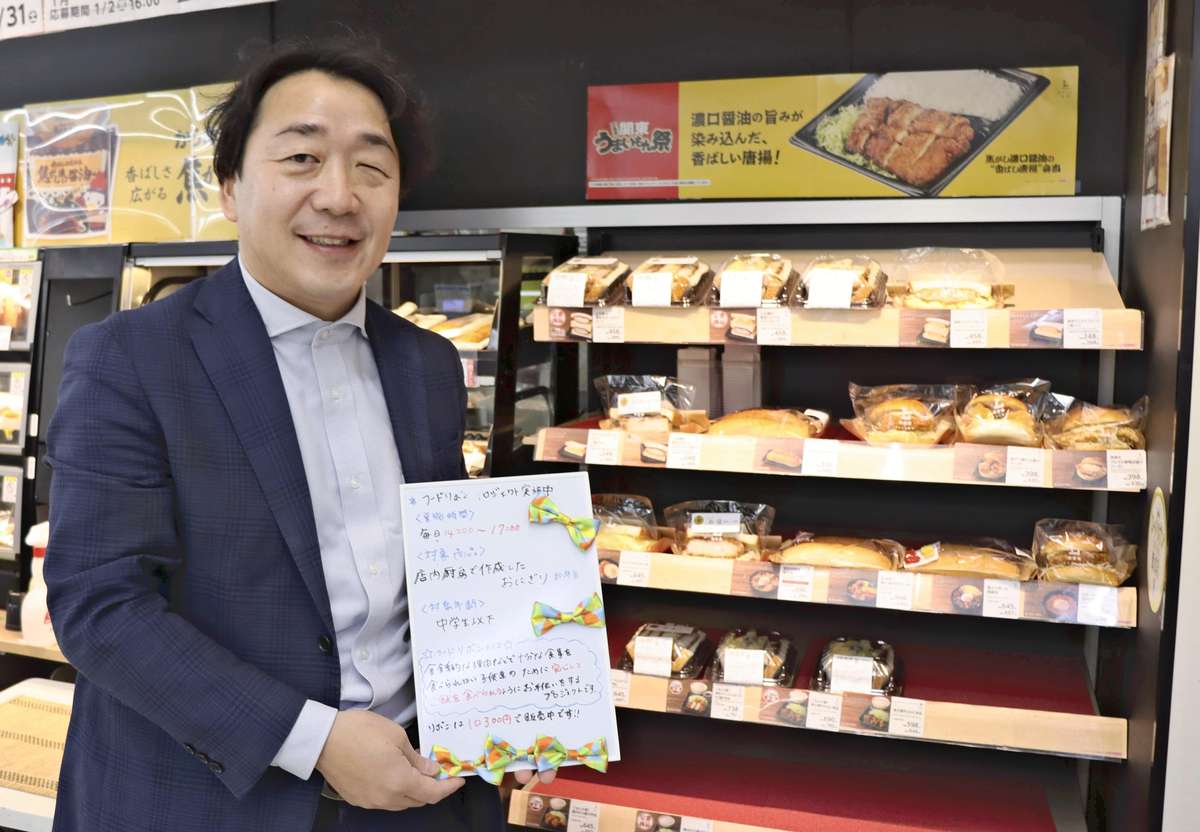 With the approval of the convenience store chain operator, Ueyama hands out rice balls and bento box meals cooked in-store to children. These are usually close to their expiration dates and thus also helps reduce food waste. He makes provisions for about 15 meals a day.