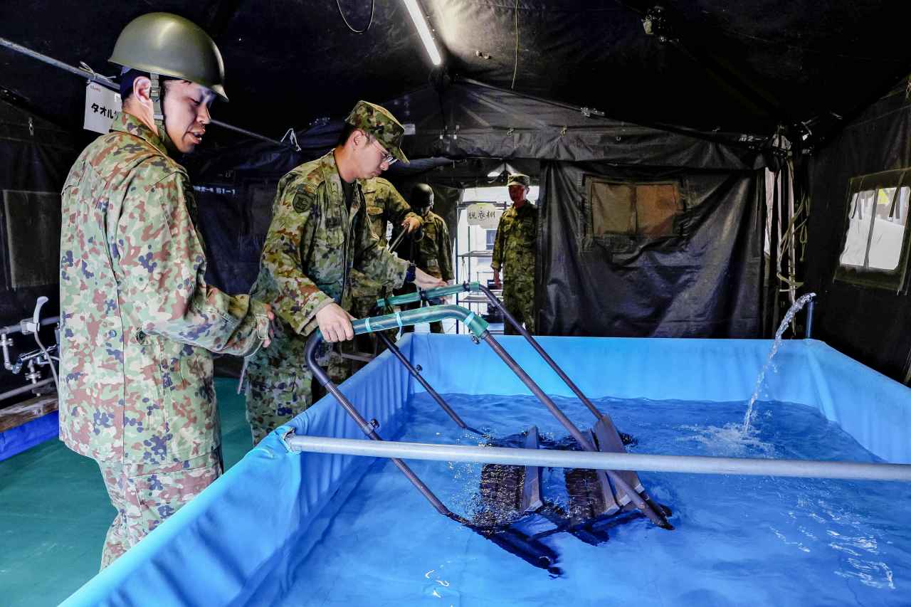 Just after the earthquake struck, the SDF set up temporary bathing facilities at 18 locations in six municipalities in the prefecture. Now, the facilities are only in Suzu, as the water and sewer systems have been restored in the other municipalities.