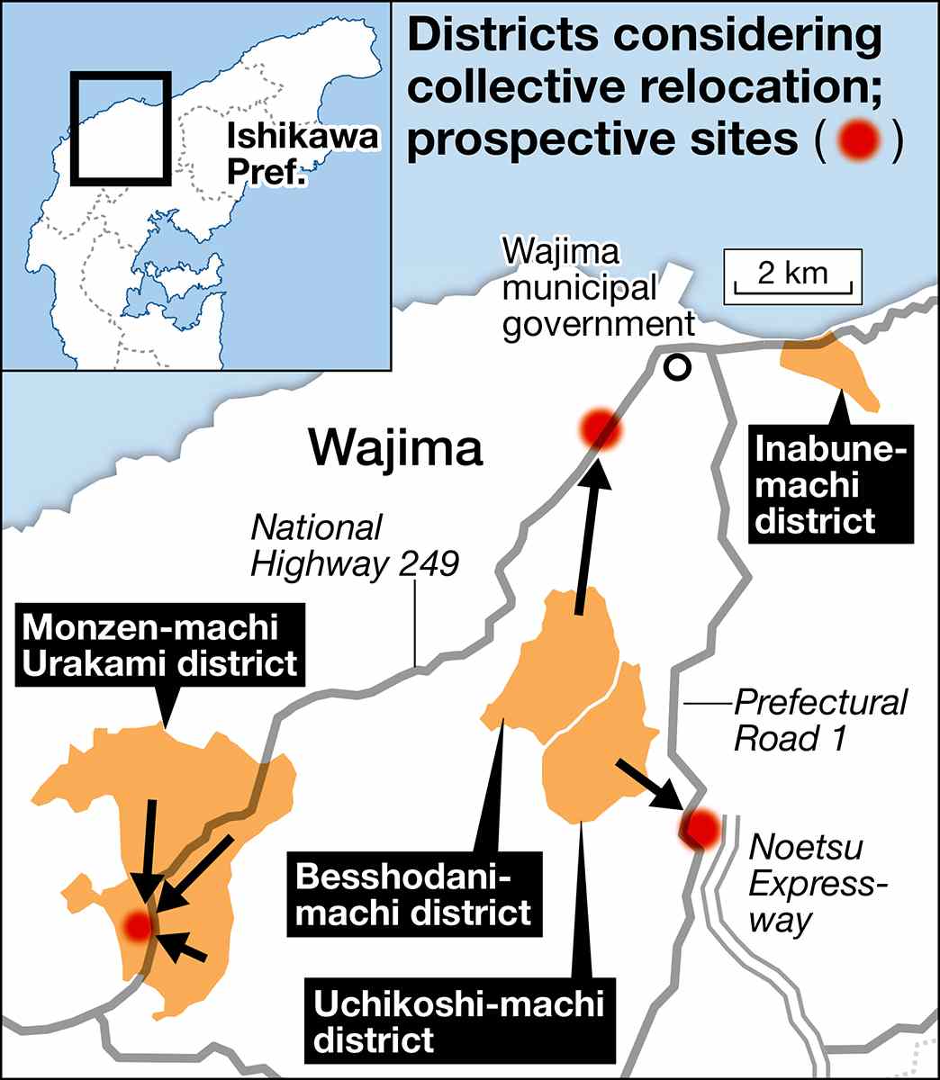 WAJIMA, Ishikawa — At least four districts of Wajima, Ishikawa Prefecture, a city hard hit by the Noto Peninsula Earthquake, are considering the collective relocation of their residents, it has been learned.