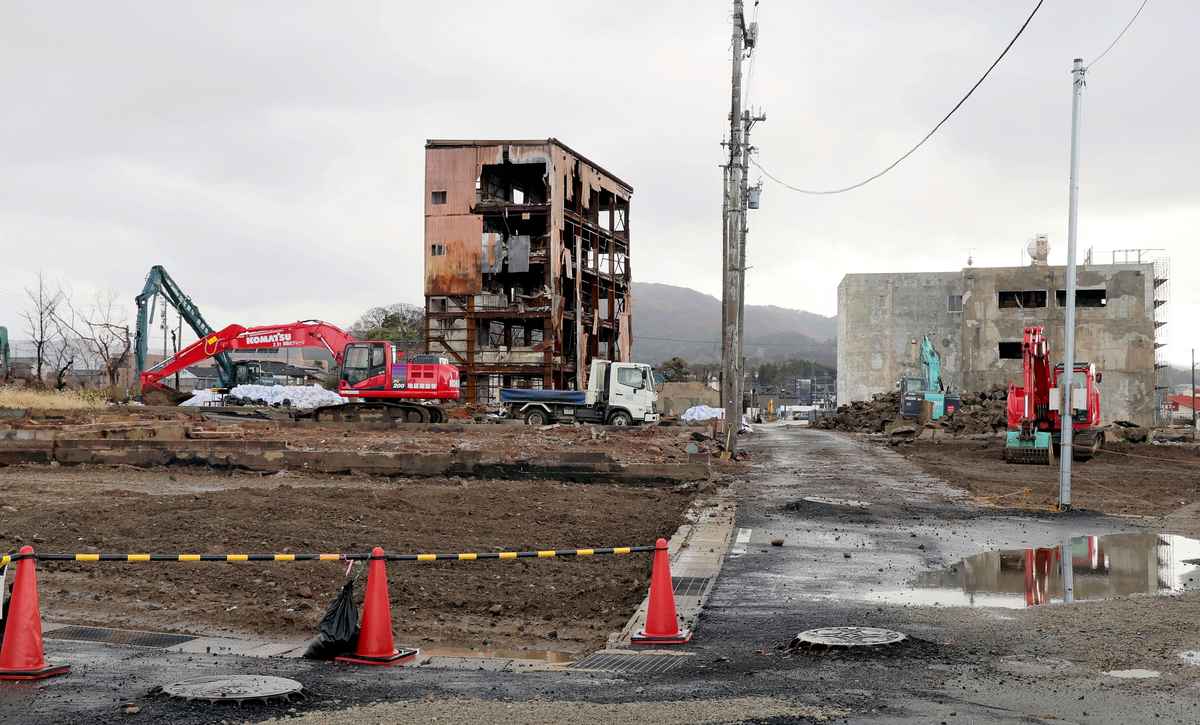 The demolition of houses and other buildings continues around the Wajima Morning Market in Wajiama, Ishikawa Prefecture, on Dec. 1.