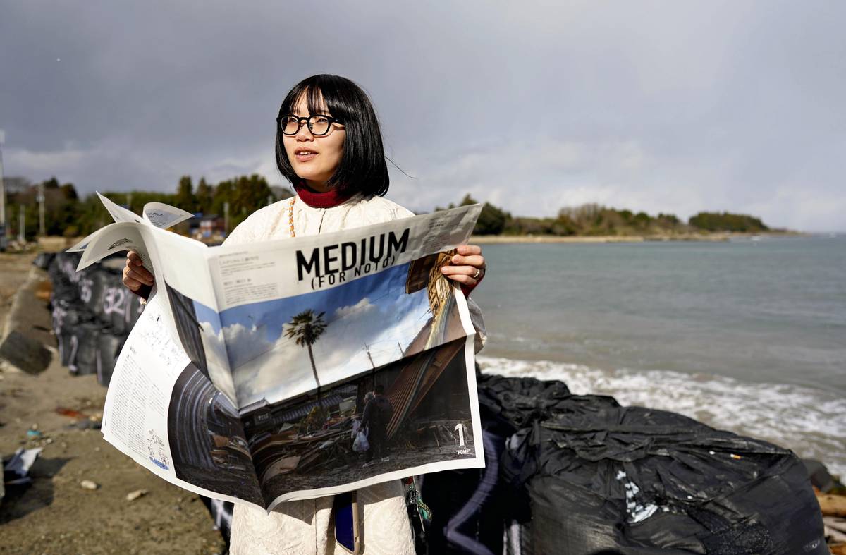 “I want to record feelings that cannot be expressed in spoken words,” said Ayumi Sakaguchi, 22, a fourth-year student at Kanazawa College of Art in Kanazawa who launched “Medium (For Noto)” at her own expense on Dec. 12. Sakaguchi wrote in the paper about four people, including her parents, who decided to demolish their damaged house. She also wrote about her own emotional ups and downs immediately after the earthquake.