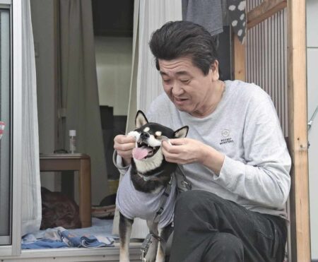 SUZU, Ishikawa — A bar owner in Suzu, Ishikawa Prefecture, reunited with his beloved Shiba Inu do...