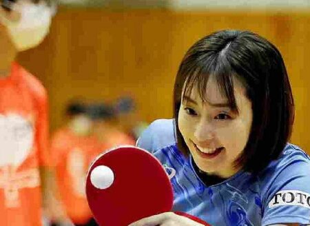 Kasumi Ishikawa, a former member of Japan’s national table tennis team, gave table tennis lessons...