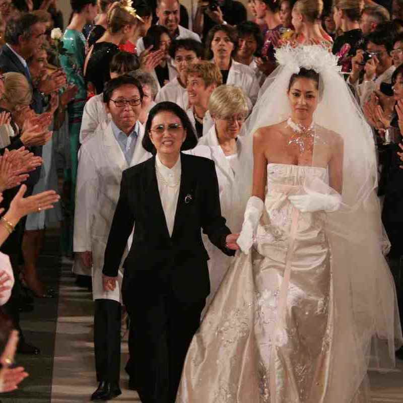Mori became involved with Paris haute couture in the 1970s and began sharing her Japan-inspired creations with the world. She designed a formal low-necked dress that the Empress wore on her wedding day when she married the Emperor, who was then crown prince, in 1993.