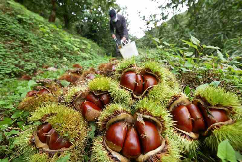 Farmers are busy harvesting glossy sweet chestnuts in the northern area of the Hanshinkan region in Hyogo Prefecture, a local specialty that represents the flavor of autumn in the area.