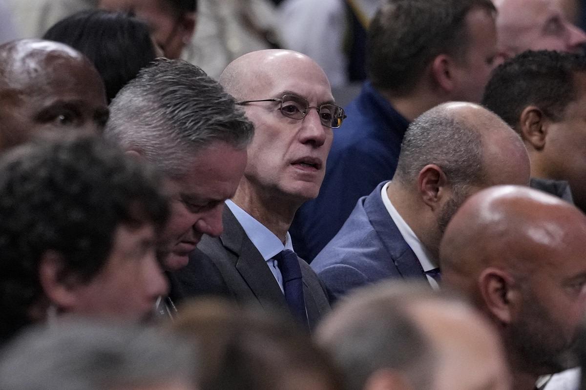 NBA commissioner Adam Silver watches the Washington Wizards play the Indiana Pacers during the first half of an NBA basketball game in Indianapolis, Wednesday, Oct. 25, 2023.