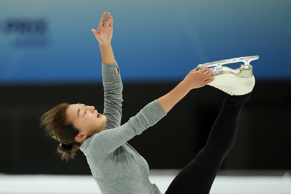 Japan’s Kaori Sakamoto practices ahead of the ISU Grand Prix of Figure Skating in Beijing, Wednesday, Dec. 6, 2023.