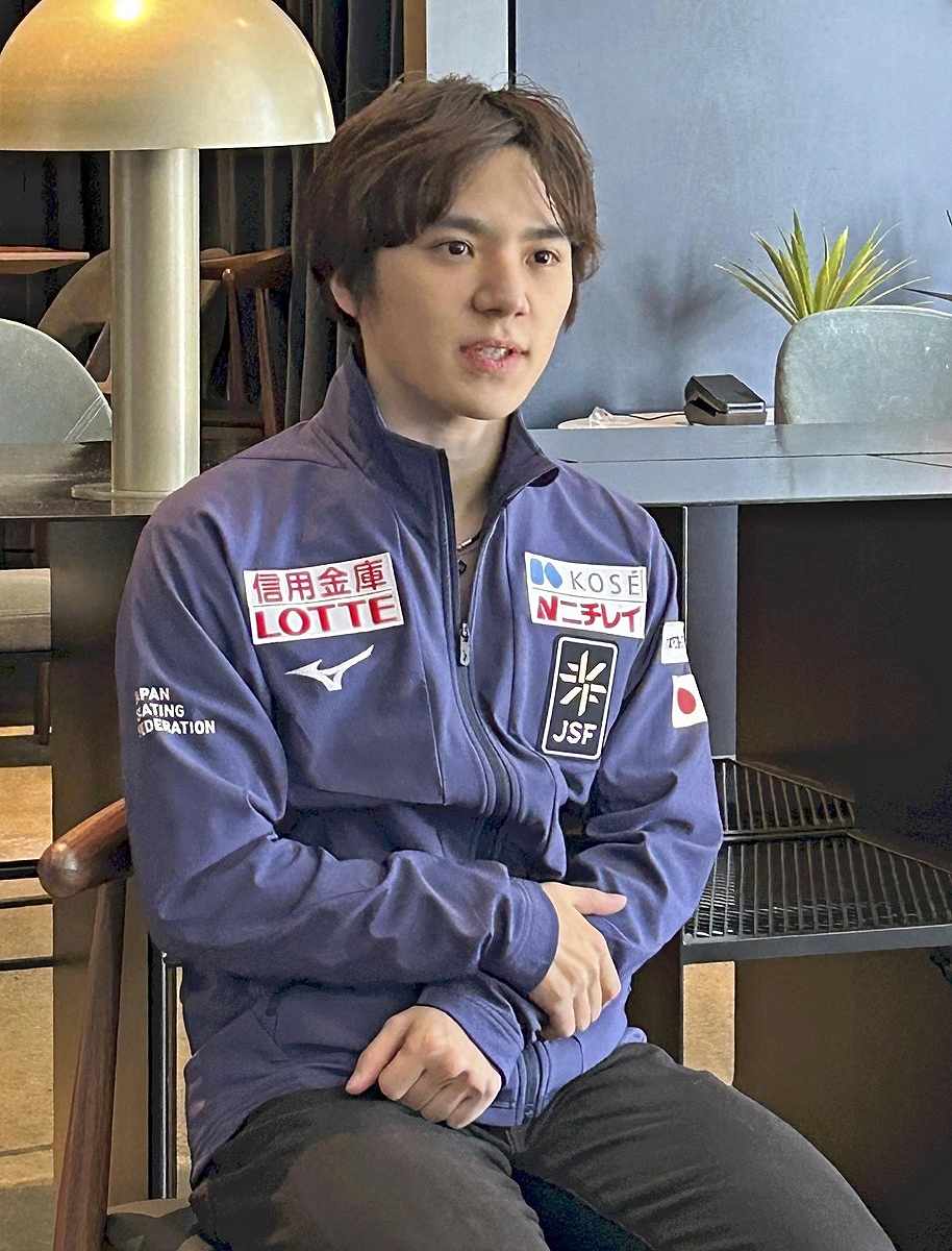 Shoma Uno speaks to reporters on March 24 after finishing 4th in men’s figure skating at the World Figure Skating Championships.
