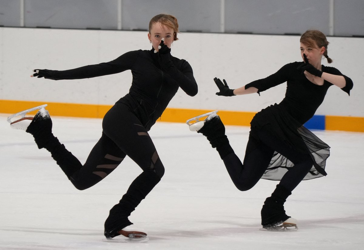 Ice dance team Emma Aalto and Millie Colling train at a rink in Helsinki, Finland, September 1, 2025.