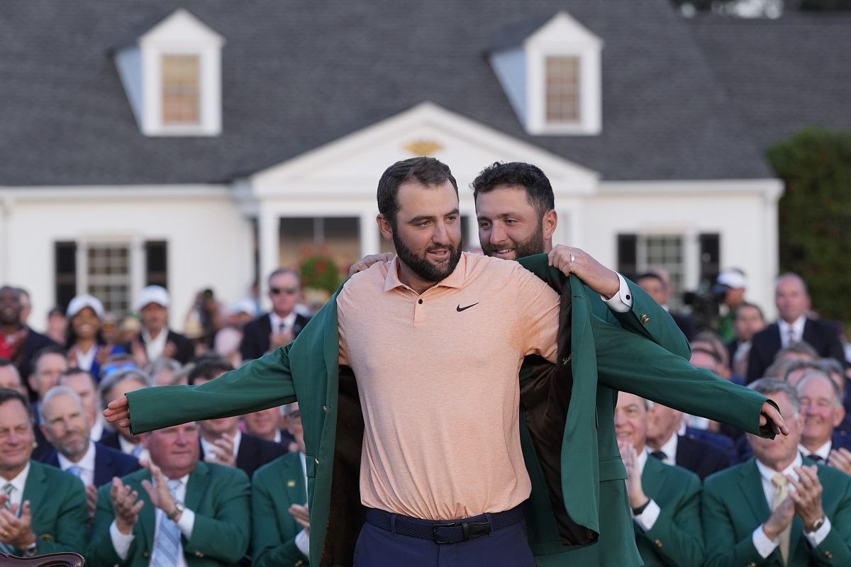 Defending champion Jon Rahm, now with Saudi-funded LIV Golf, closed with a 76 and tied for 45th, 20 shots behind Scheffler. He was in Butler Cabin to help Scheffler into the green jacket.