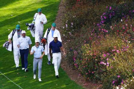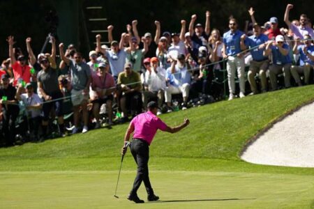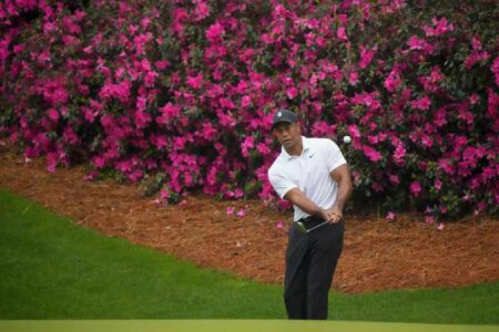 AUGUSTA, Ga. (AP) — Tiger Woods playing the Masters again, his shirt as pink as the azaleas at Augus...