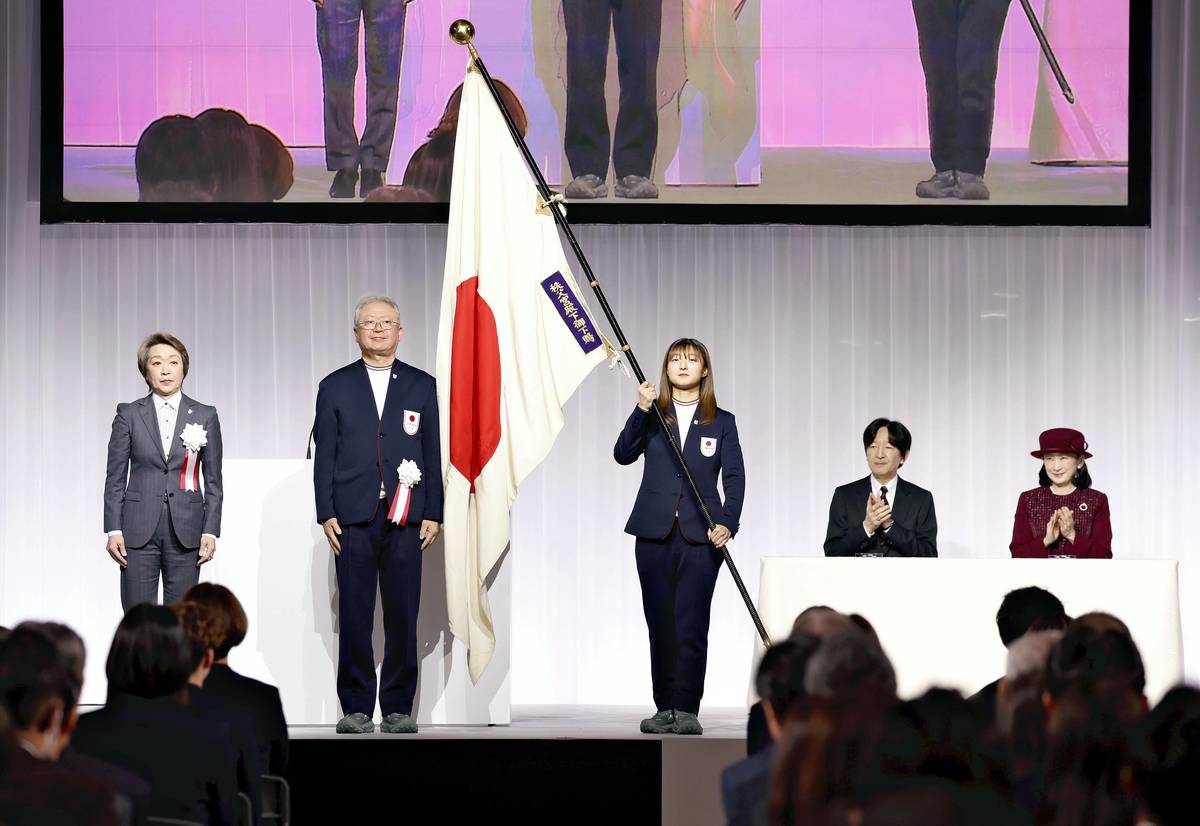 Athletes vowed to give it their all when they represent Japan at next month’s Milano Cortina Winter Games in Northern Italy during a ceremony at LaLa arena Tokyo-Bay in Funabashi, Chiba Prefecture, on Sunday.