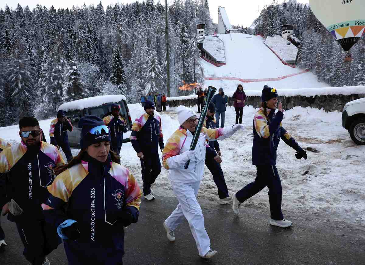 CORTINA D’AMPEZZO, Italy — The Olympic torch relay reached the co-host Cortina d’Ampezzo on Monday, heading into the Dolomite town on the 70th anniversary of the opening of its 1956 Winter Games.