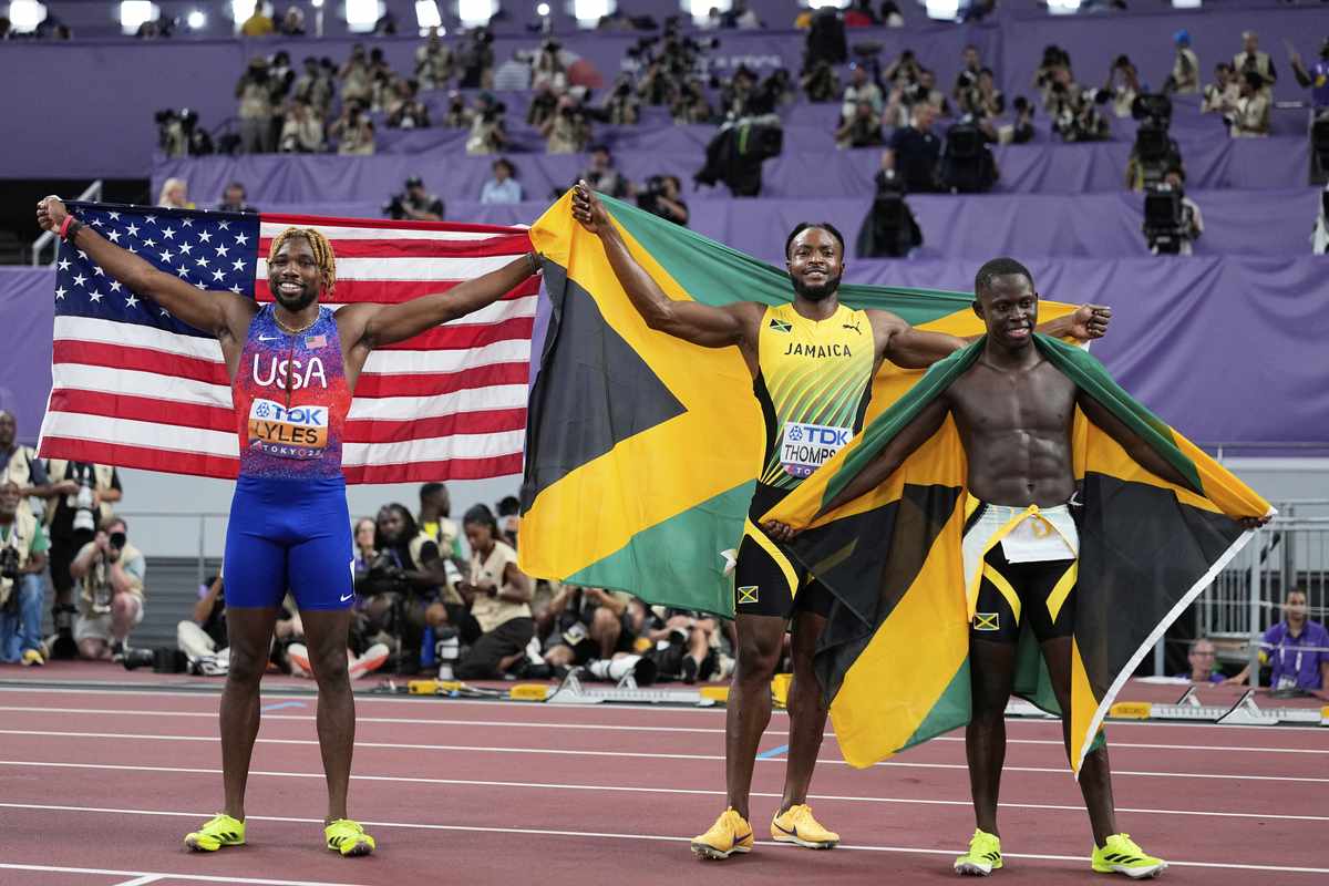 Jamaica’s Oblique Seville and Kishane Thompson sent Bolt into celebration mode by combining for a 1-2 finish in the men’s 100-meter sprint, while defending champion Noah Lyles took bronze.