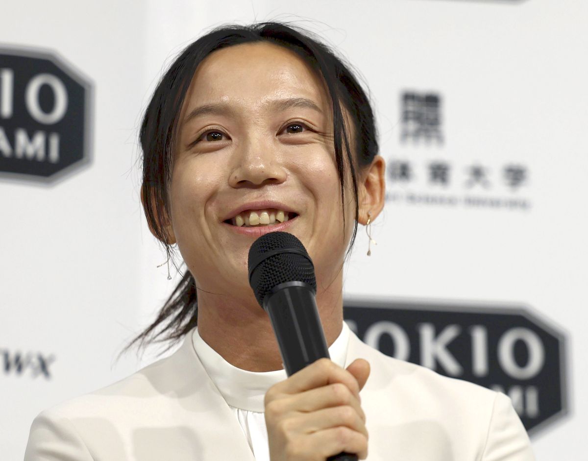 Miho Takagi attends a press conference in Chuo Ward, Tokyo, on Monday.