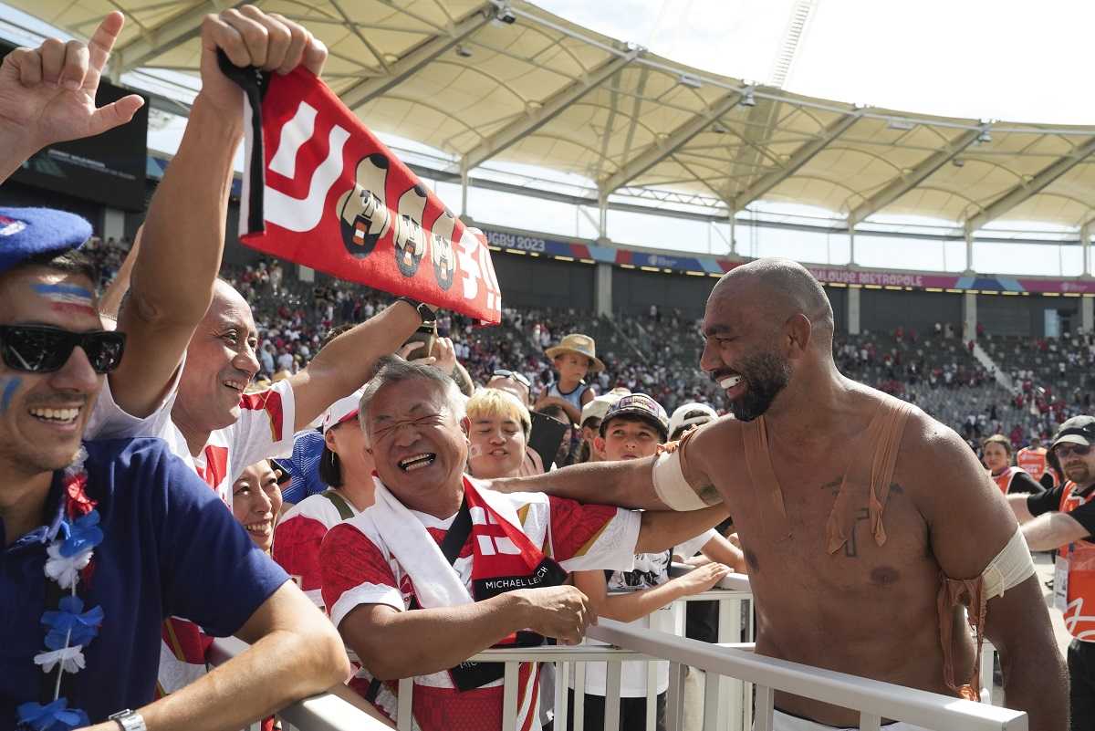 Japan’s Michael Leitch reacts with supporters following the Rugby World Cup Pool D match against Chile at Stadium de Toulouse, Toulouse, France, Sunday, Sept. 10, 2023.