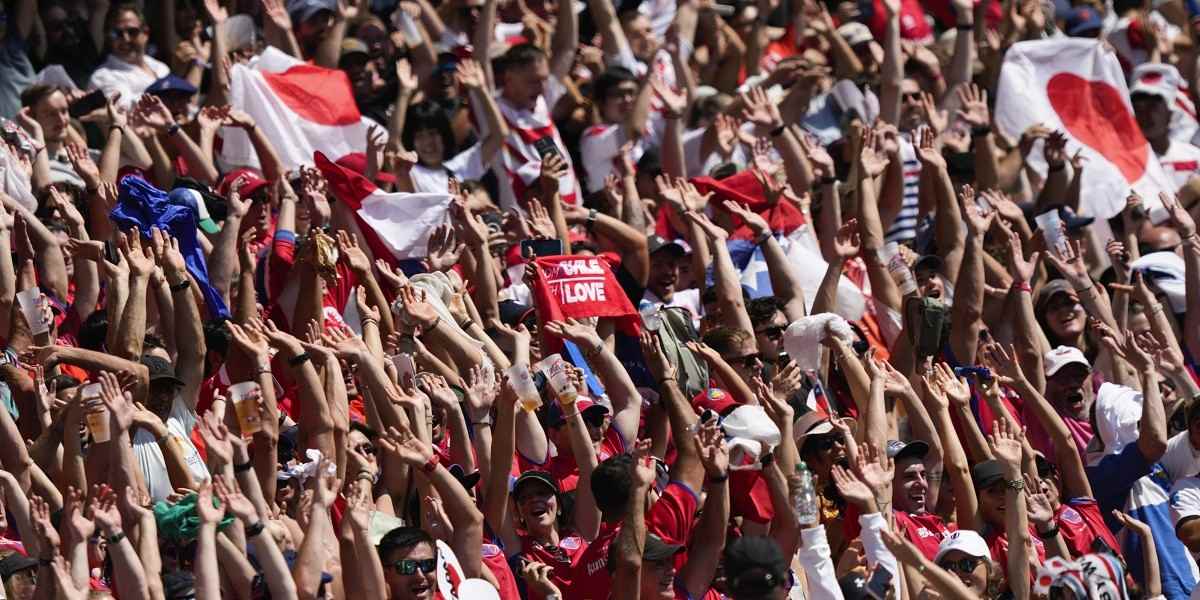 Fans react during the Rugby World Cup Pool D match between Japan and Chile at Stadium de Toulouse, Toulouse, France, Sunday, Sept. 10, 2023.