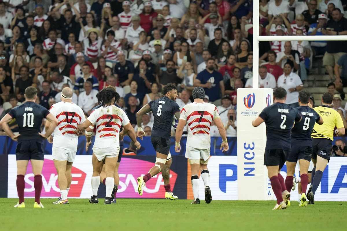 Moments later, Japan cut through England’s defense but knocked on with the line in sight and momentum was lost. England’s third try soon followed, when Ford’s crosskick was caught by fullback Freddie Steward who twisted into the corner.