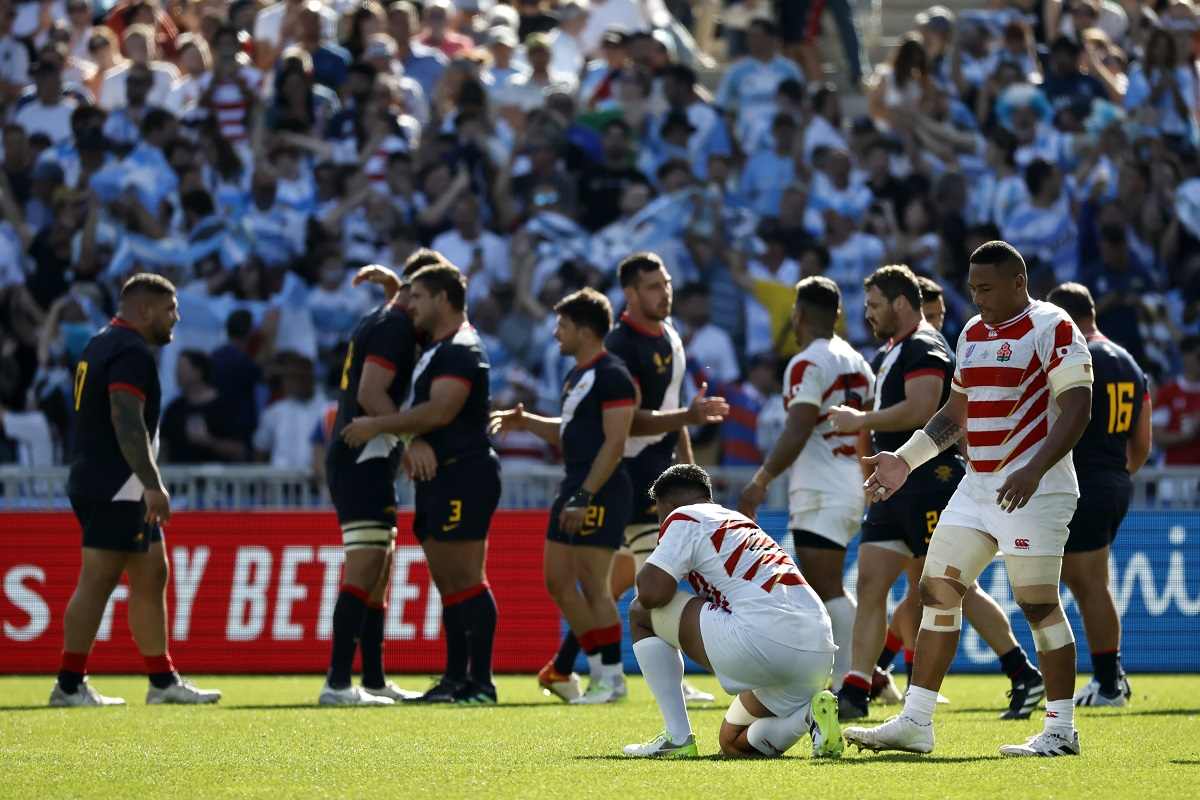 Argentina ended Japan’s involvement in the tournament with a 39-27 victory in Nantes, where winger Mateo Carreras scored a hat trick of tries for the Pumas in a breathless match featuring eight in total.