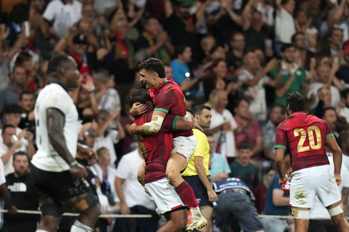 It was Portugal’s first ever Rugby World Cup win and came in the last game of Os Lobos’ — the Wolves’ — second World Cup appearance. Portugal had a golden chance at a breakthrough first win two weeks ago at the same stadium in Toulouse but missed a last-second kick in an 18-18 draw with Georgia.