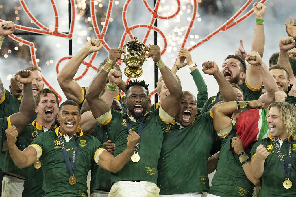 PARIS (AP) — Defending champion South Africa kicked its way to a record fourth Rugby World Cup title by beating New Zealand 12-11 on Saturday after All Blacks captain Sam Cane was the first player to be red-carded in a final.