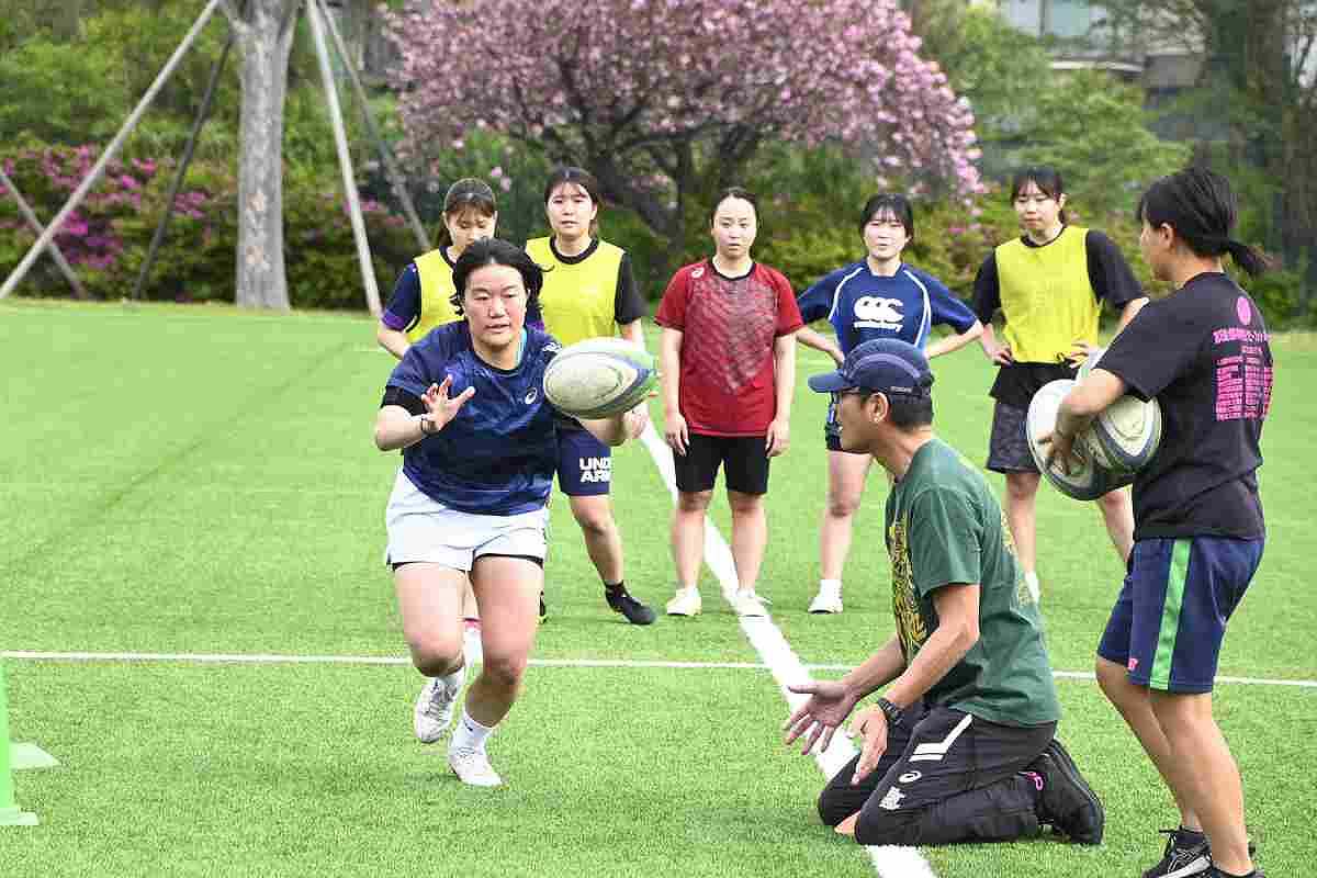 The women’s team, consisting of 11 members including a manager and a trainer, started their activities on April 1. The team members range from first-year to third-year students. Some have been eagerly playing rugby since they were young, while others are total novices.