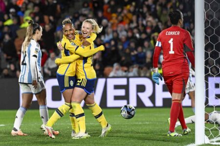 HAMILTON, New Zealand (AP) — Rebecka Blomqvist’s second-half goal lifted Sweden to a 2-0 win over Ar...