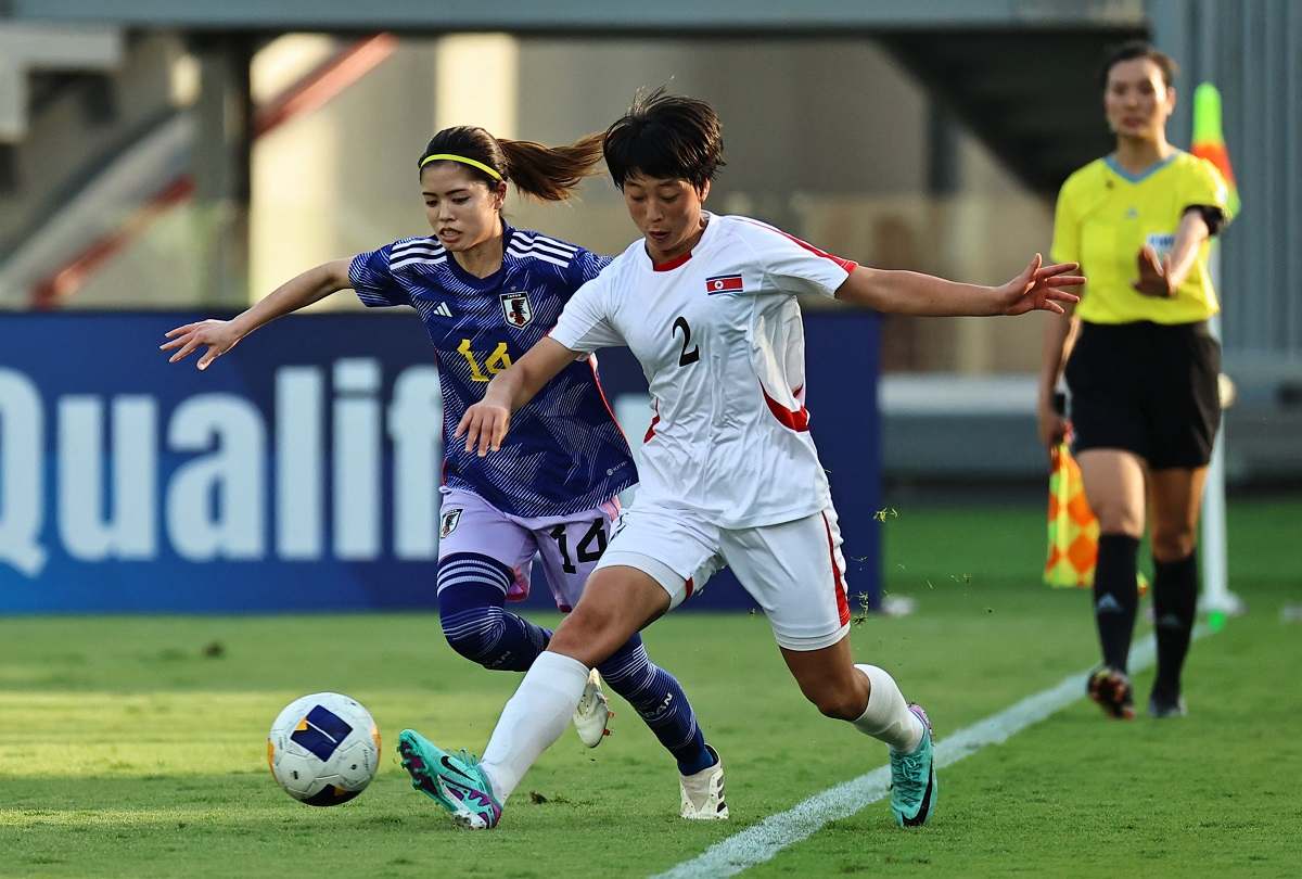 AFC Women’s Olympic Qualifiers – First Leg – North Korea v Japan – Prince Abdullah Al Faisal Stadium, Jeddah, Saudi Arabia – February 24, 2024 Japan’s Yui Hasegawa in action with North Korea’s Myong-Gum Ri