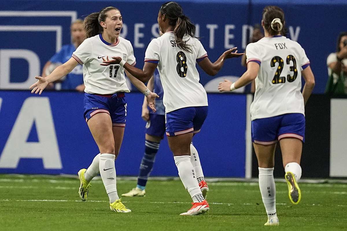 Jaedyn Shaw also scored for the United States in the match played before 50,644 fans at Mercedes-Benz Stadium, a record for a friendly match for the United States women on home soil. It was also the largest crowd for a women’s game in the United States since the 1999 World Cup final.