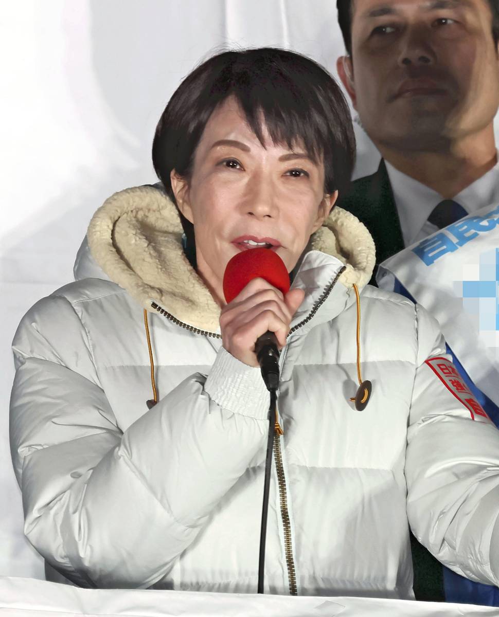Prime Minister Sanae Takaichi speaks during a street speech in Fukuoka on Friday.