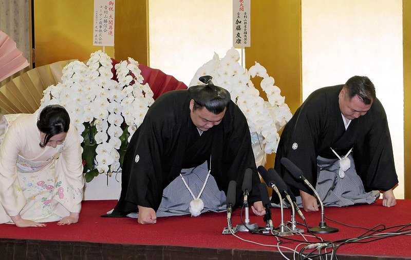 “I humbly accept this honor. I will strive with all my might to reach even greater heights,” the 29-year-old Mongolian wrestler from the Otowayama stable said at a promotion ceremony held in Sakai, Osaka Prefecture, on the day.