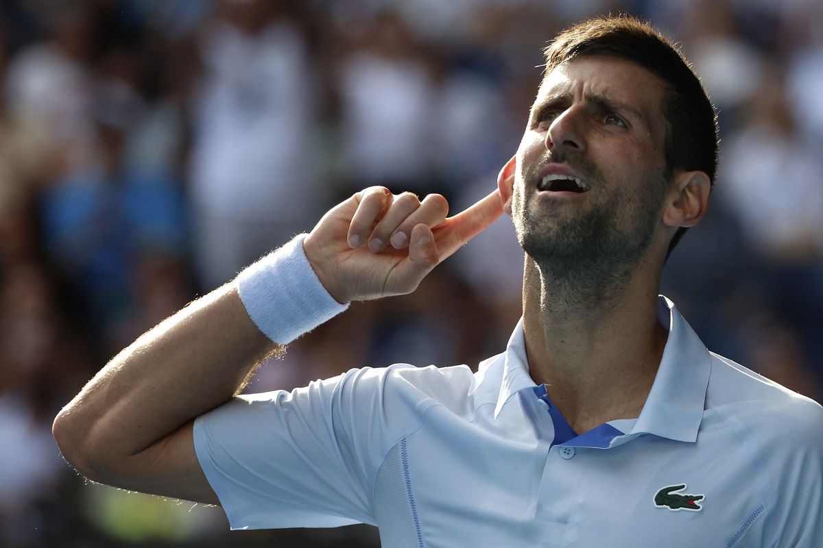 Then followed the longest first set of the tournament. In the tiebreaker, Djokovic finished a 21-shot rally with a stunning backhand crosscourt winner to get five set points. He put his finger to his ear, nodded his head and blew a kiss toward a commentary box at the rear of the court.