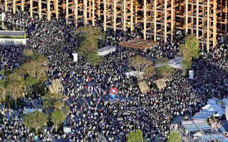 OSAKA — About 1,000 people gathered at the former site of the 2025 Osaka-Kansai Expo on Saturday ...