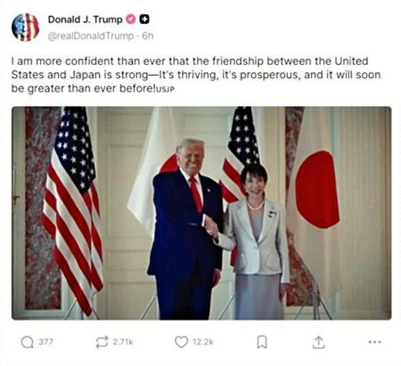 Politics & GovernmentTrump Social Media Post: Japan-U.S. Friendship Will Soon Be Greater Than Ever Before