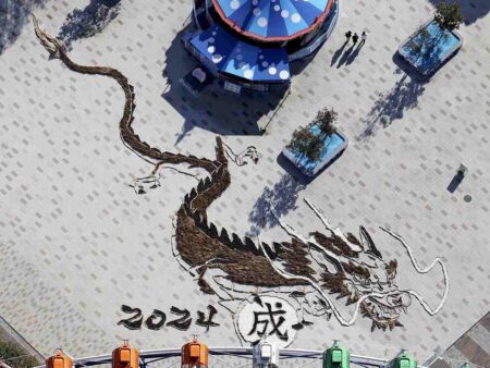 A large-scale work of land art featuring a dragon, the animal representing the 2024 Chinese calendar...