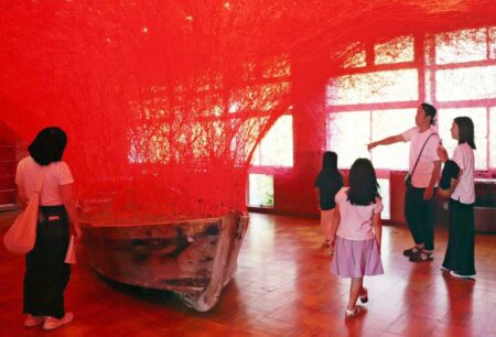 The Aze no Kirameki illumination event began Saturday at the Shiroyone Senmaida rice terraces, a nat...