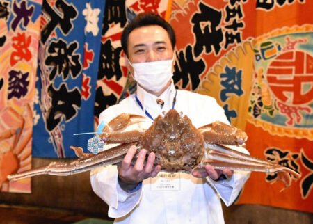 A snow crab was auctioned for a celebratory price of ¥5 million at a wholesale market in Kanazawa, I...