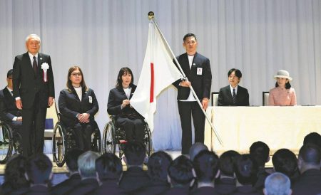 An inauguration ceremony for Japan’s para-athlete team heading to next month’s Milano Cortina Par...