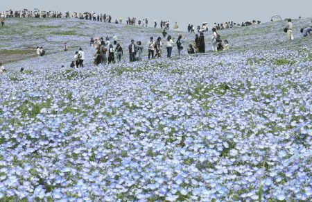 MITO — A carpet of pale blue nemophila flowers has reached peak bloom, delighting visitors to the...