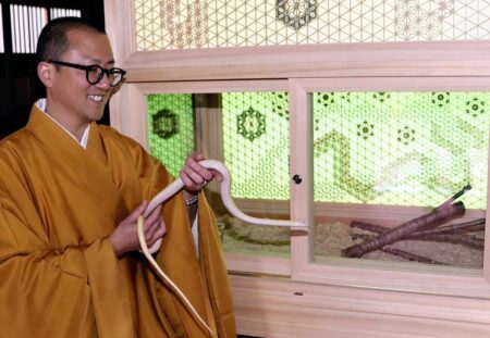 Japan In FocusOkayama: White Snakes on Display to Mark Year of the Snake
