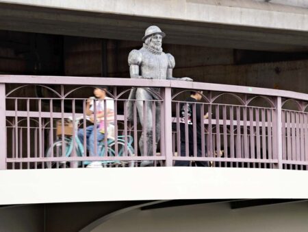 SAKAI — A statue on a bridge near Nankai-Sakai Station on the Nankai Line in Sakai, Osaka Prefect...