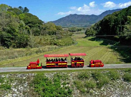 Fukuoka: Red Trolley Train Runs Through Mountainous Village; Passengers Get Once-in-a-Month Experience